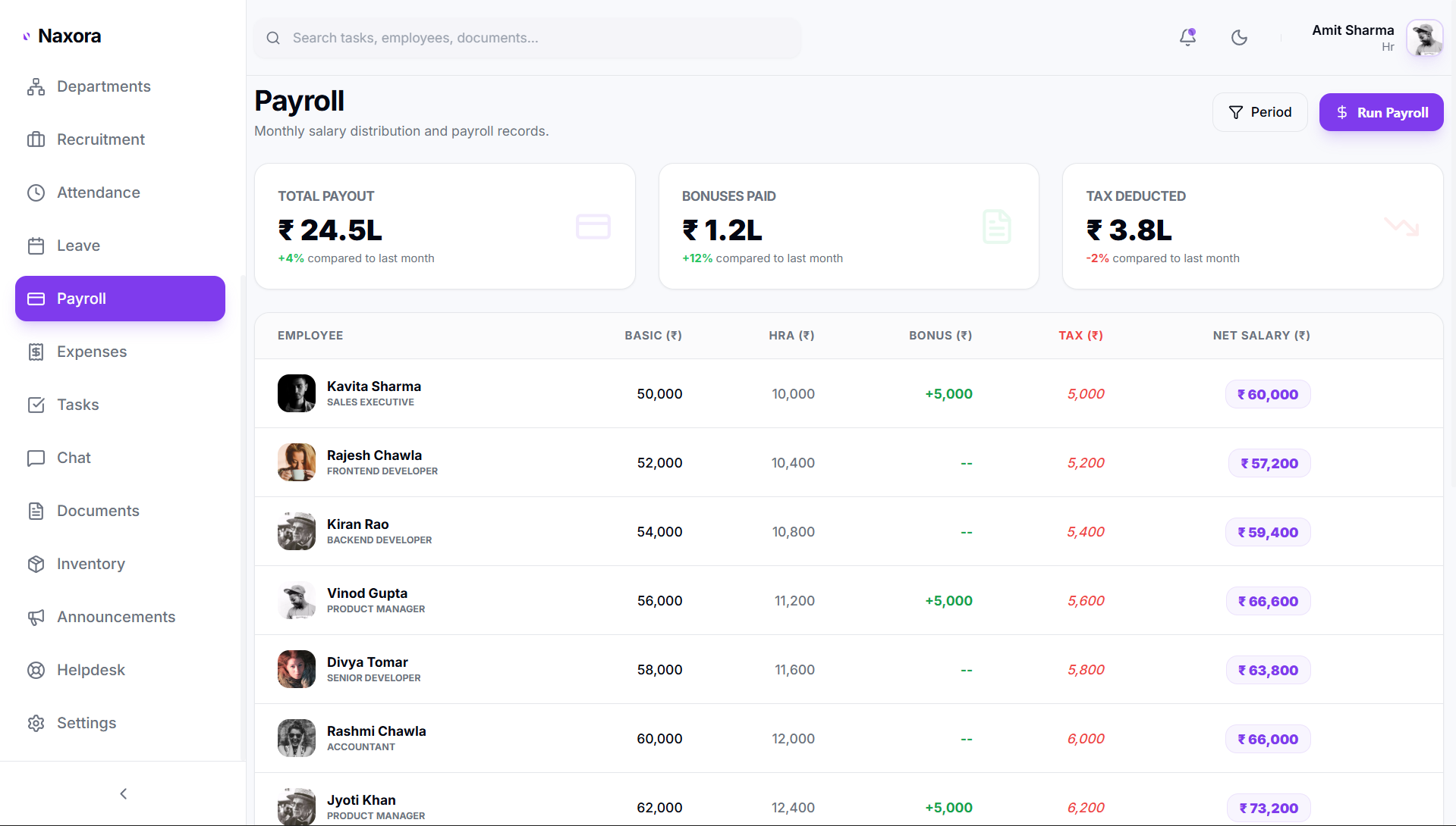 Naxora brings all HR functions into a single, intuitive interface, eliminating the need for multiple disconnected tools.